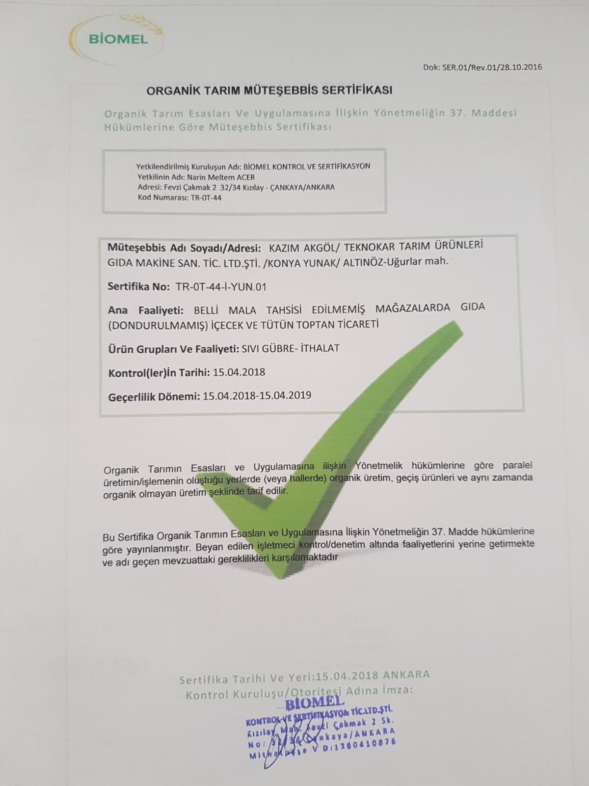 ORGANİK GÜBRE SERTİFİKASI